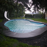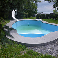 trottoir couleur gris, revêtement latex bleu,